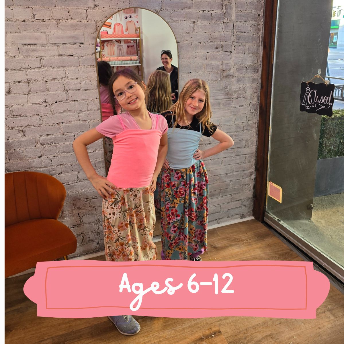 Our advanced sewing classes include Pattern & Stitch and Fashion Designer. Pattern & Stitch is designed for kids ages 9-12 who have completed at least one school year (or three seasons) of our Kids' Sewing Class or have at least one year of garment sewing experience. Fashion Designer is for students who have completed two school years in our program or have at least two years of garment sewing experience.