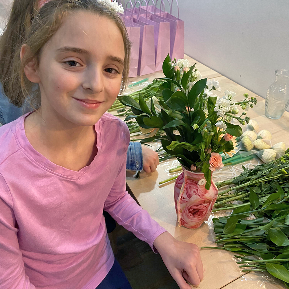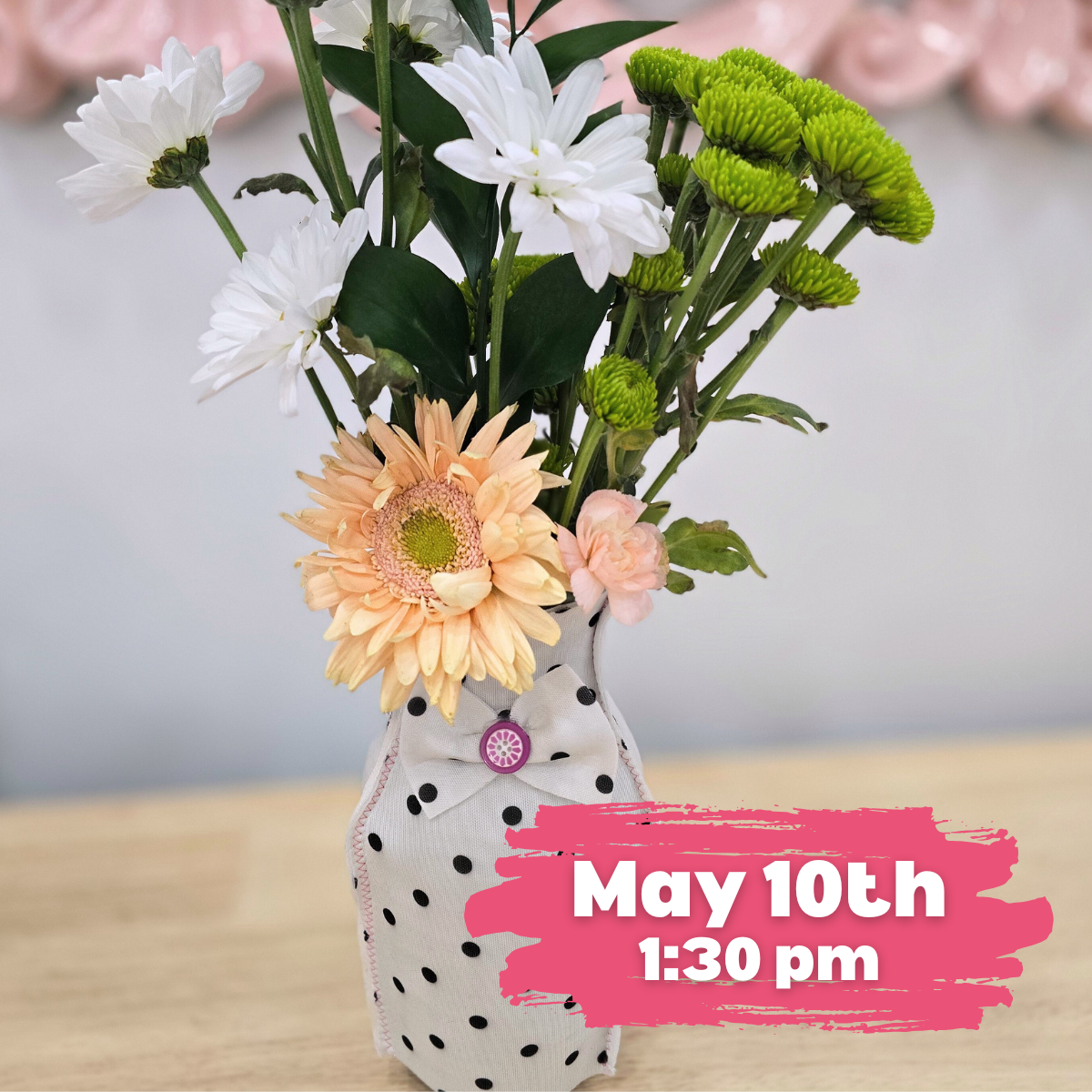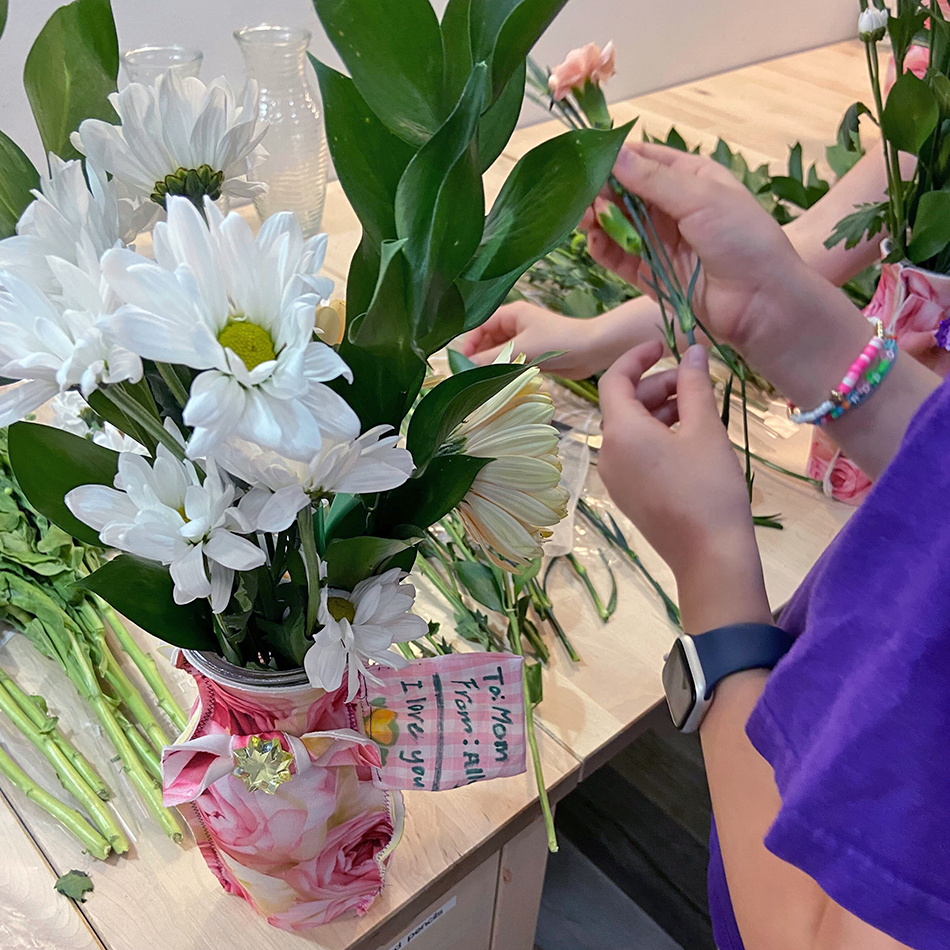 In this festive, hands-on workshop, young creators will learn how to sew a beautiful fabric vase cover using our sewing machines and vibrant fabrics. Then, they’ll visit our custom Flower Bar to design a one-of-a-kind bouquet for their mom or caregiver. From choosing fresh blooms to arranging them with care, every detail will be made with love.