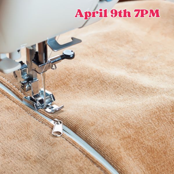 Learn to use a sewing machine and add a zipper in our machine sewing class for adults - beginners are welcome.