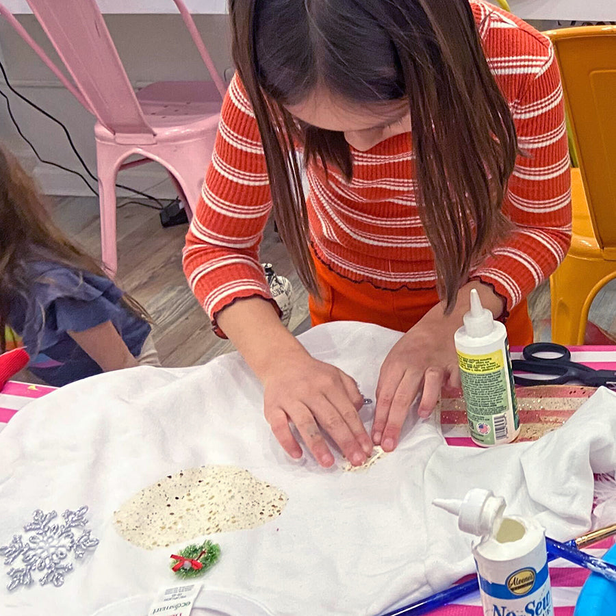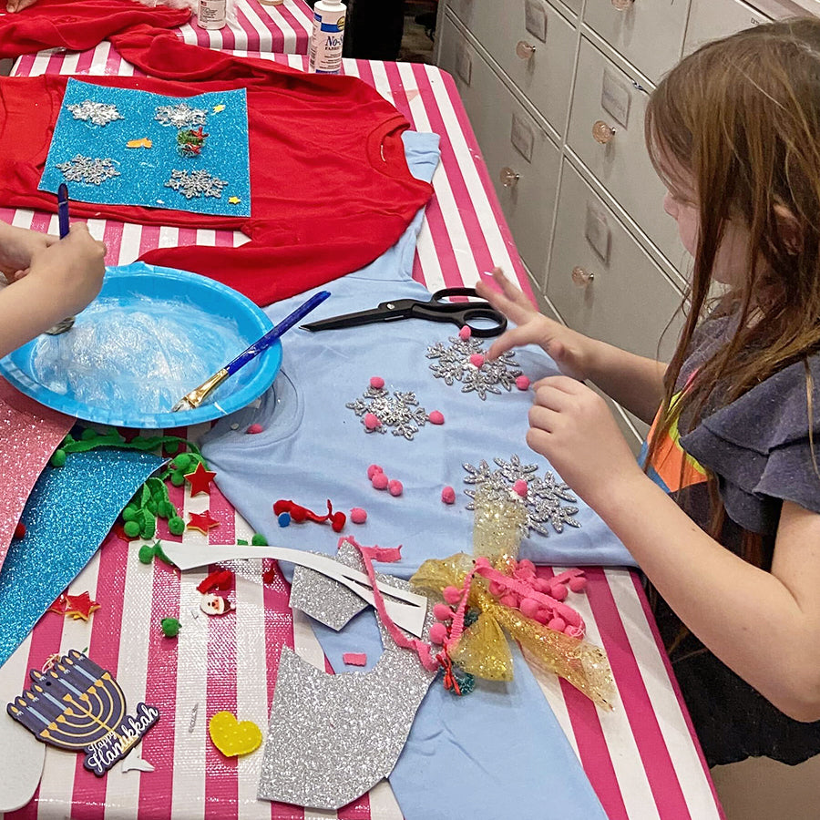 We're bringing the jingle to your child's wardrobe, and it's all about adding a sprinkle of creativity to your festive holiday fashion. We're talking paint, pom-poms, glue, sequins, fabric, and all sorts of dazzling embellishments!